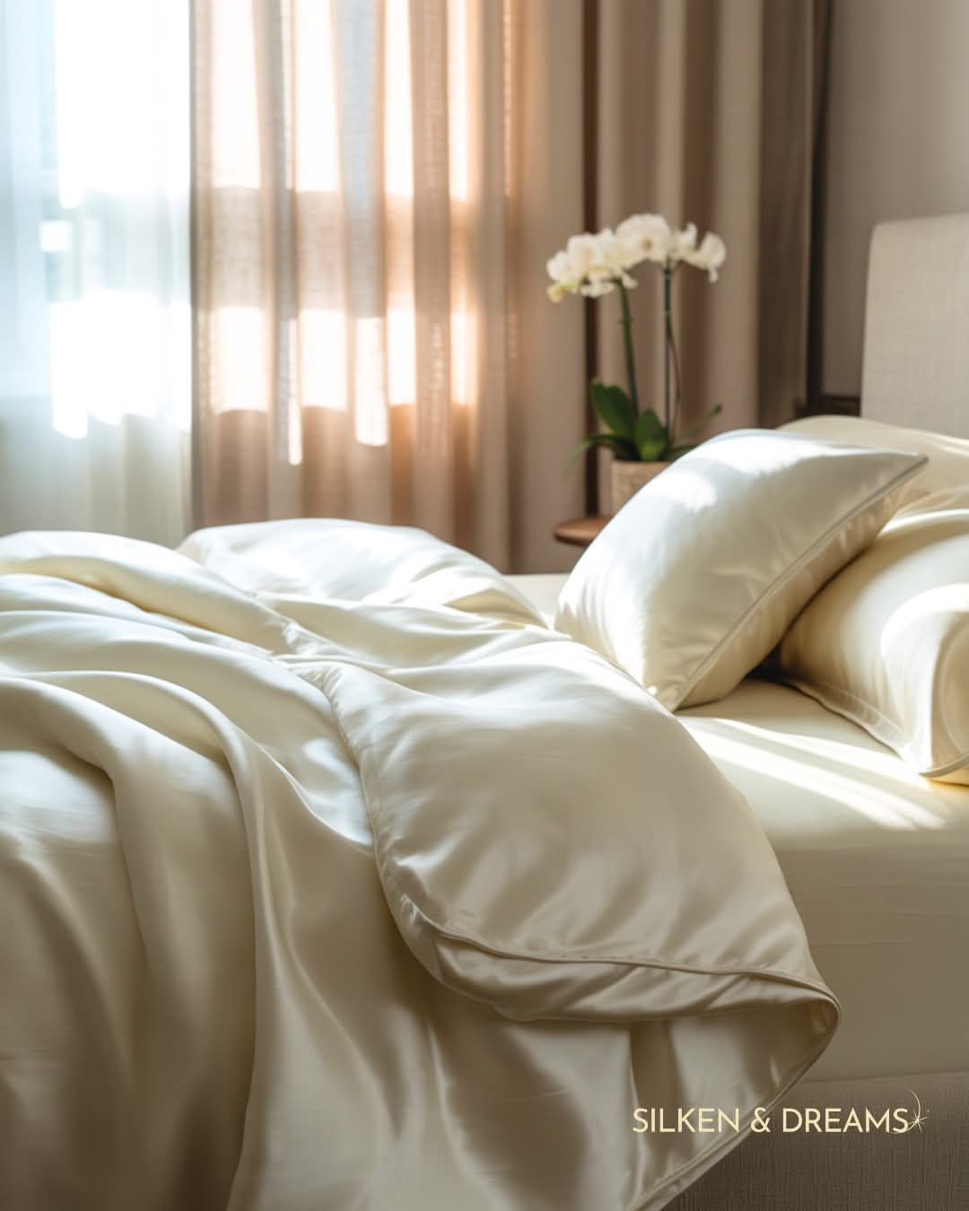 Satin refers to a type of weave and is often made from polyester, a synthetic fabric that can feel clingy, cause static, and lacks the natural coolness and softness of real silk. Sound familiar? Discover the difference with our premium-grade Mulberry silk—luxuriously smooth, breathable, and gentle on the skin.