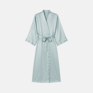 Crafted from premium mulberry silk, this pastel nightgown embodies effortless elegance and comfort. Designed with a relaxed silhouette, a soft tie belt, and delicate contrast piping, it offers the perfect balance of luxury and simplicity. The lightweight silk drapes beautifully, making it an ideal choice for lounging, sleeping, or layering as a refined housecoat. Its pastel hues add a modern, calming touch to your loungewear collection.