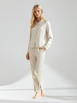 100% Mulberry Silk Women’s Pajama Set – Luxurious Long Sleeve Sleepwear