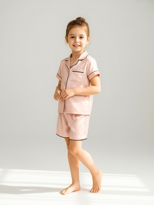 Children’s 100% Mulberry Silk Pajama Set – Short Sleeve Shirt & Shorts Sleepwear