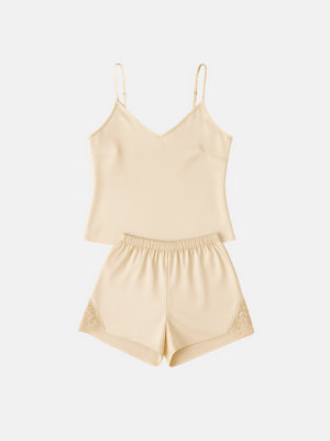 Slip into elegance with our Lace Pajama Set, featuring a V-neck, backless cami trimmed in fine lace, and adjustable straps for the perfect fit. The matching shorts have a comfortable elastic waistband, offering freedom of movement and a flattering silhouette.