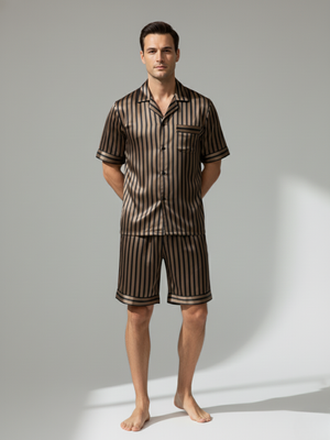 Stay cool, comfortable, and effortlessly stylish with this Men’s Ice Silk Pajama Set, designed for ultimate relaxation at home. The two-piece set includes a short-sleeve top and matching shorts, made from breathable, lightweight ice silk that feels smooth and luxurious on the skin.