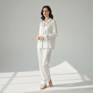 Women’s 100% Mulberry Silk Pajama Set – Long Sleeve Sleepwear with Contrast Piping